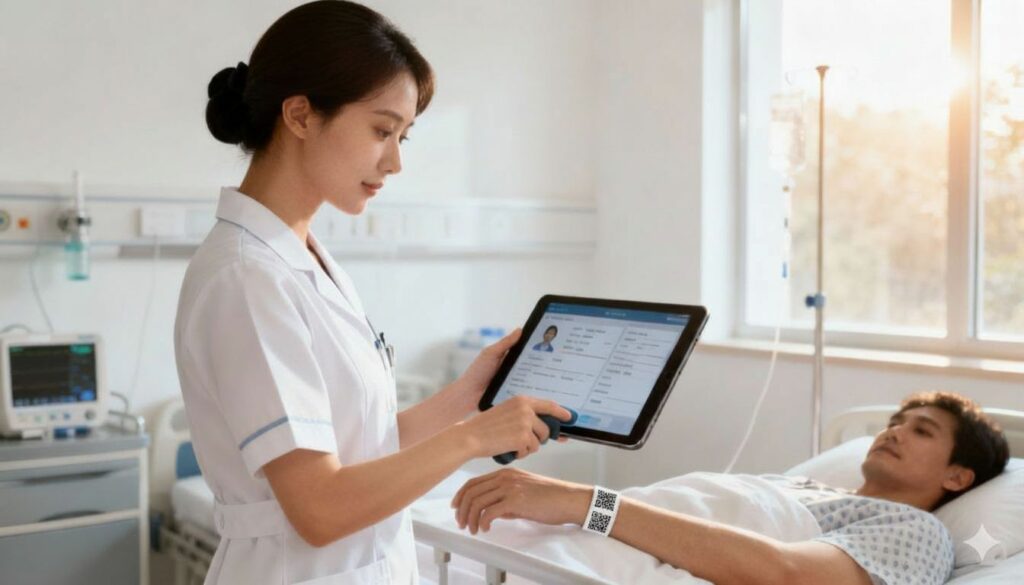 - Immediate Information Access: A nurse can scan a patient’s wristband to see their medical records, allergies, and current treatment plan without ever leaving the bedside to find a chart.
